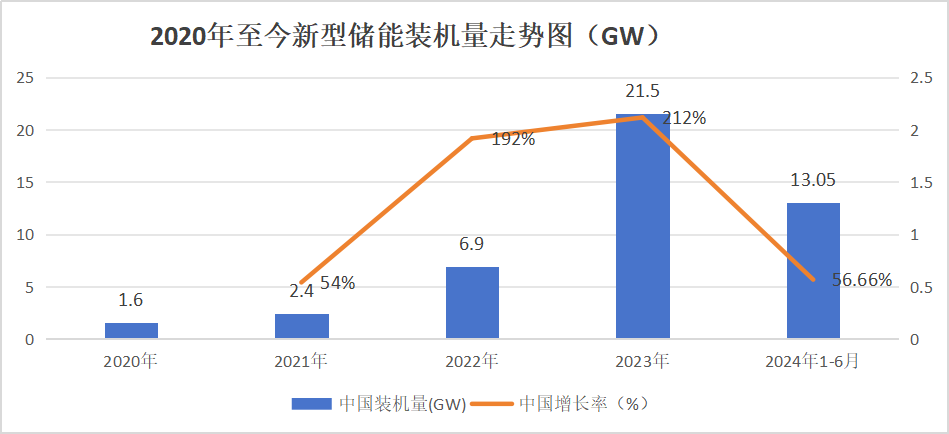 截至2024年上半年,全国已建成投运新型储能项目累计装机规模达4444万千瓦/9906万千瓦时,较2023年底增长超过40%。按此测算,仅上半年新建成投运新型储能项目装机规模就达到了1305千瓦/3219万千瓦时,相比去年同期增长了56.66%。